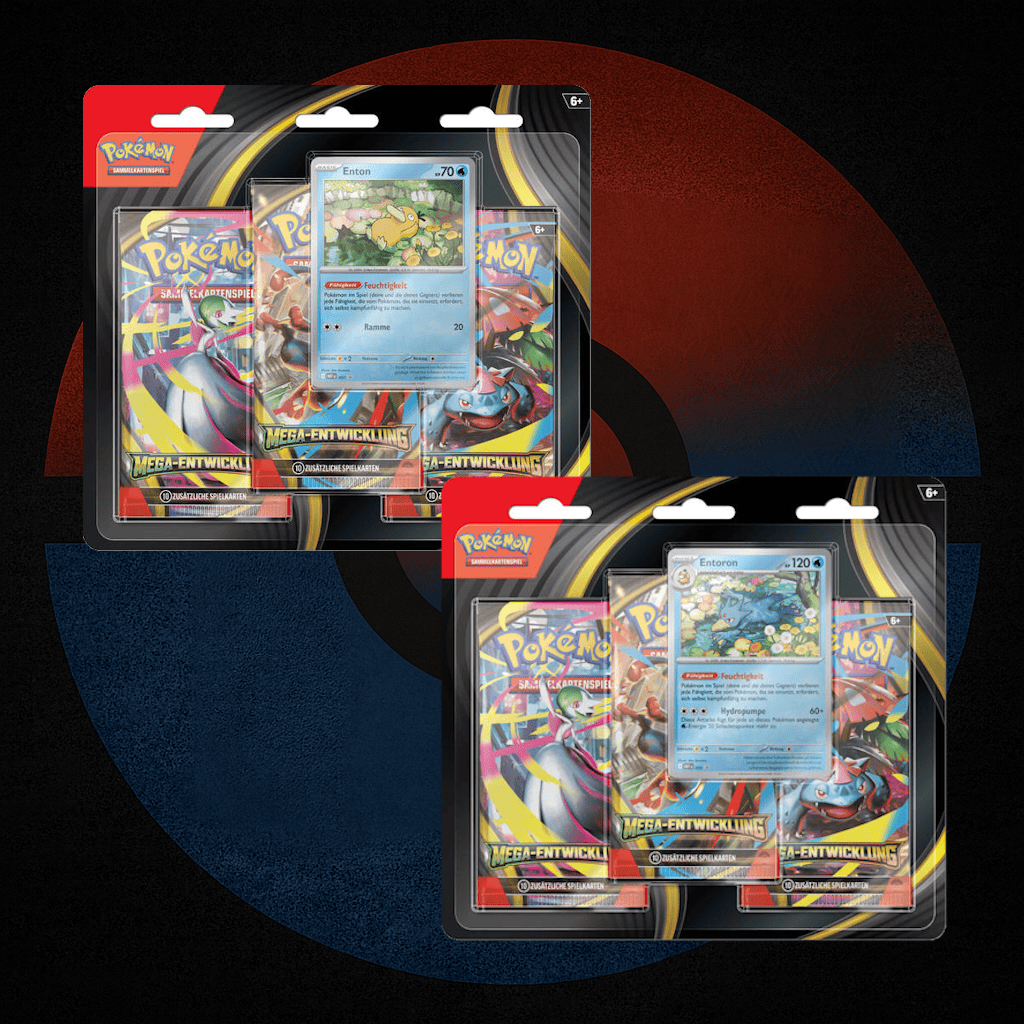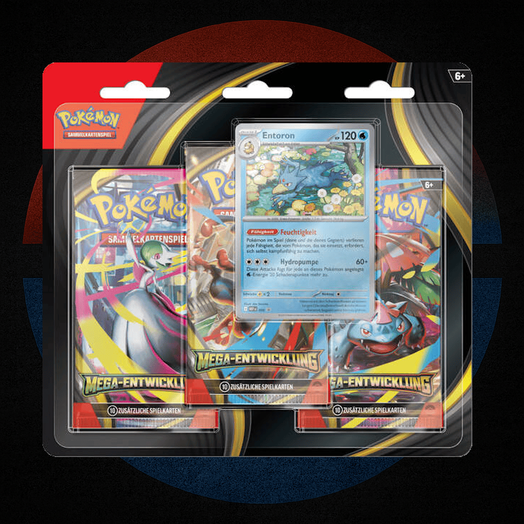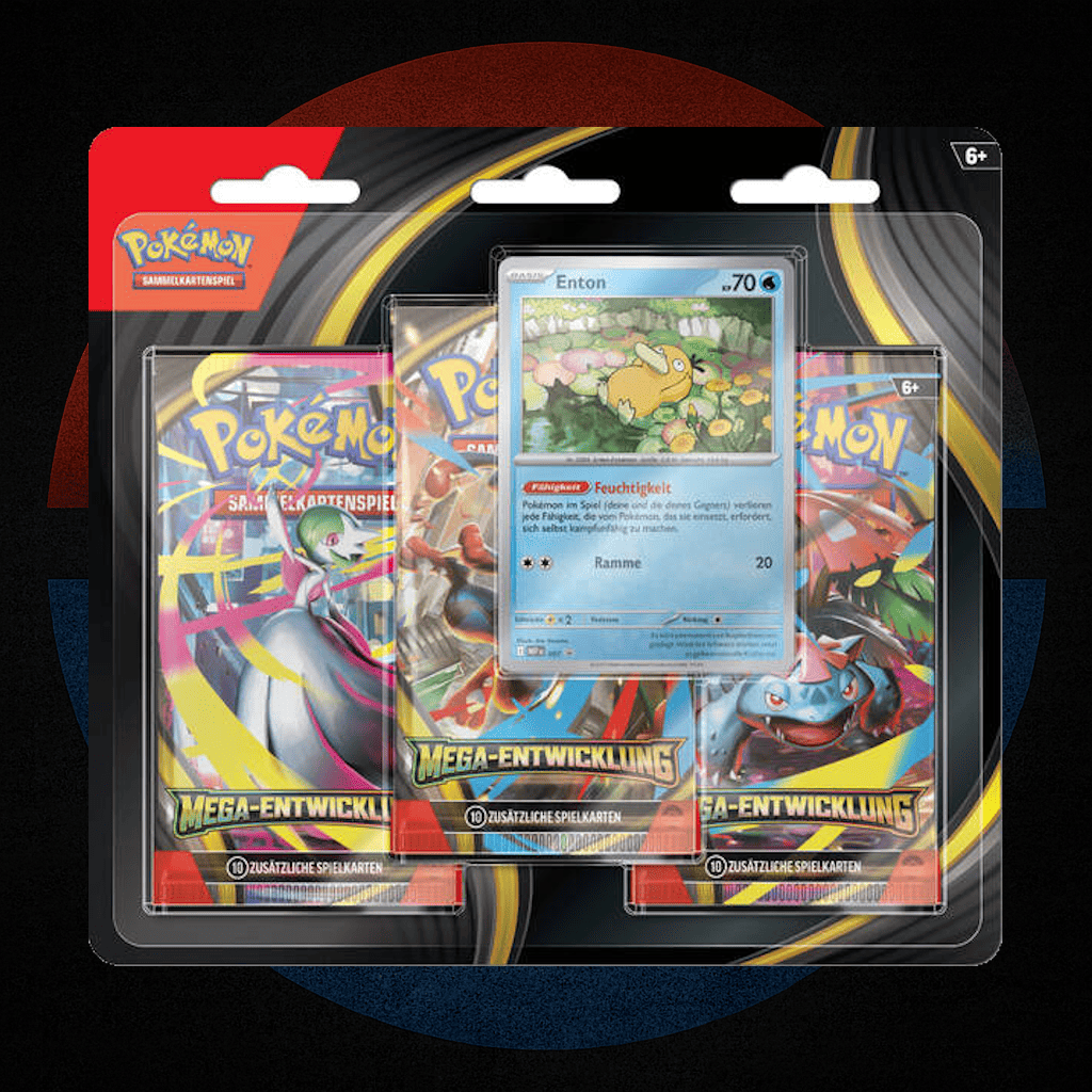 Mach dich bereit für explosive Energie und legendäre Stärke – mit dem brandneuen Pokémon TCG: Mega Entwicklung– 3-Pack Blister! Diese Edition bringt die ikonischen Mega-Pokémon zurück ins Rampenlicht – stärker, stylischer und mächtiger als je zuvor.